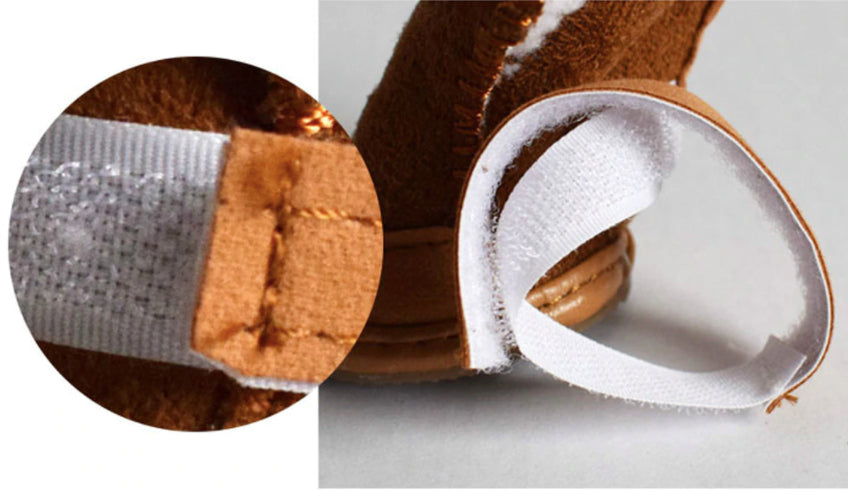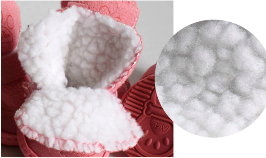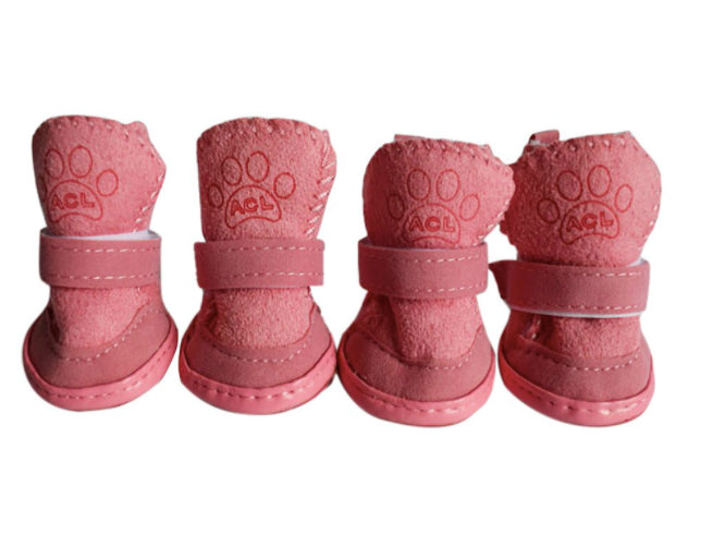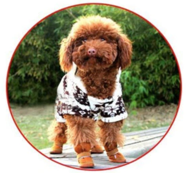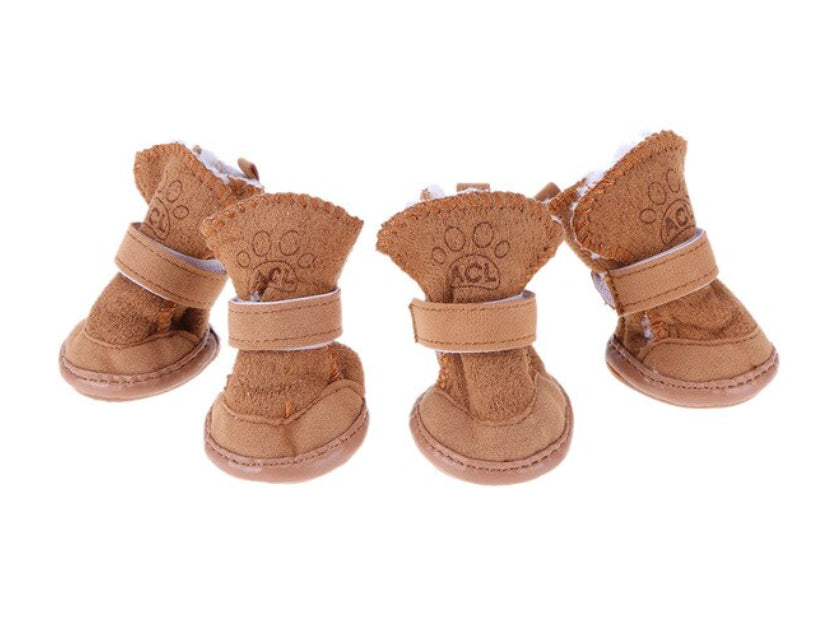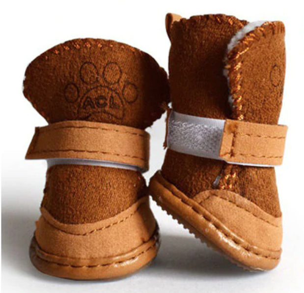 With a faux suede outer and soft sherpa lining, this lightweight shoe is a comfortable and easy one ideal for shorter walks. The flat sole is pliable and works well for dogs with a wider foot or dogs with very furry feet.